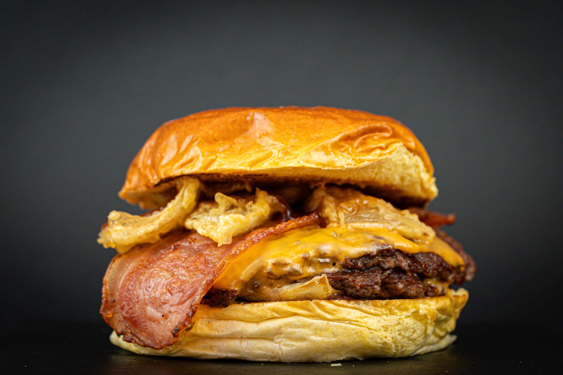 Pan brioche, 180g de chuletón de vaca madurada, Salsa BBQ big John´s, queso cheddar, bacon crujiente, cebolla caramelizada, crema camembert.